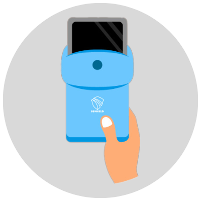À l’entrée de la zone sans téléphone, l’élève glisse son smartphone dans la pochette et la verrouille (clic). Le téléphone devient inaccessible et, grâce à la doublure type Faraday, il ne capte plus de réseau. La pochette est déverrouillée en fin de zone au socle prévu à cet effet par un adulte autorisé.